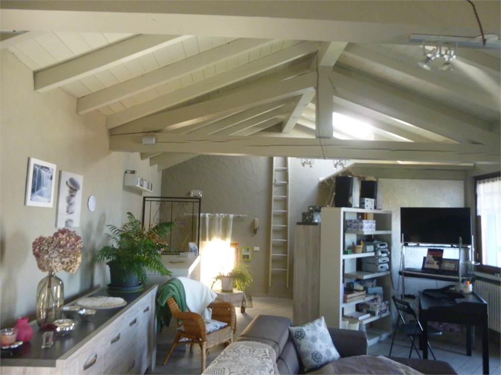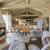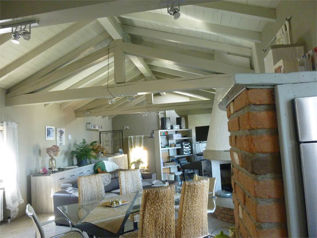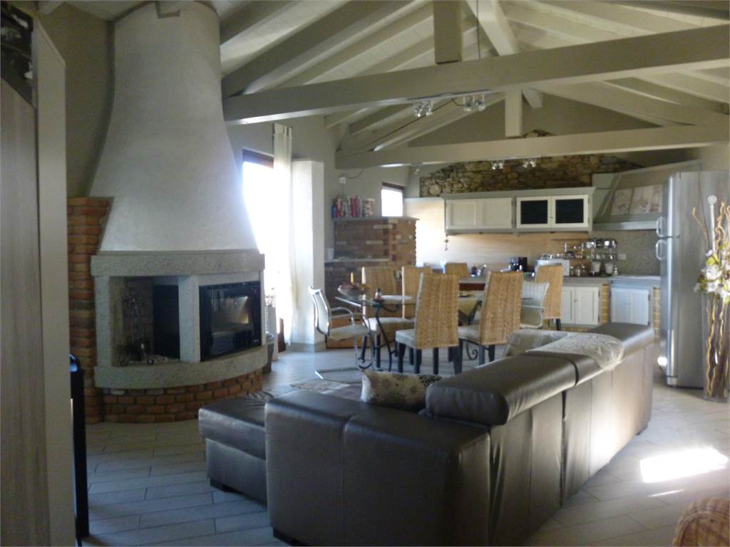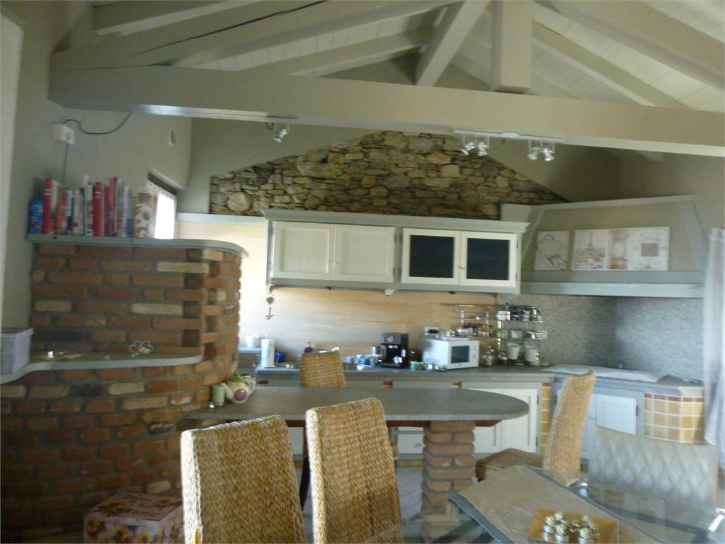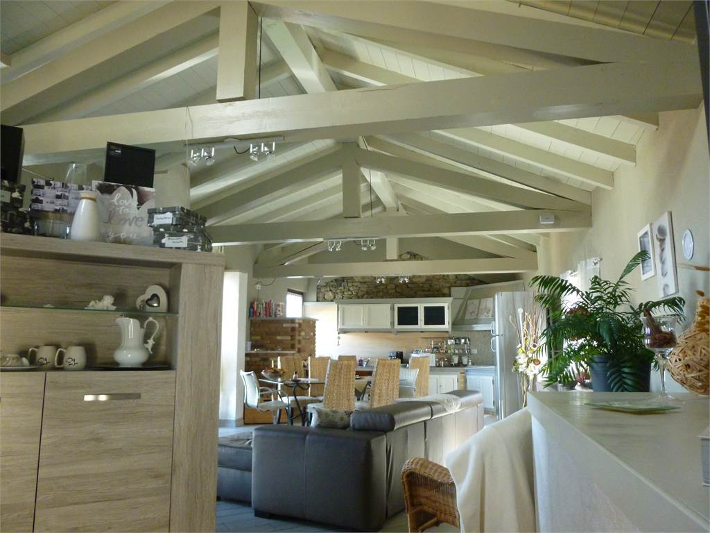 Il piano secondo caratterizzato da capriate a vista è composto da stupenda zona giorno, con soggiorno impreziosito da termo-camino, cucina a vista in muratura, moderno bagno con vasca/doccia in pietra, angolo hobbies e fantastico panorama.