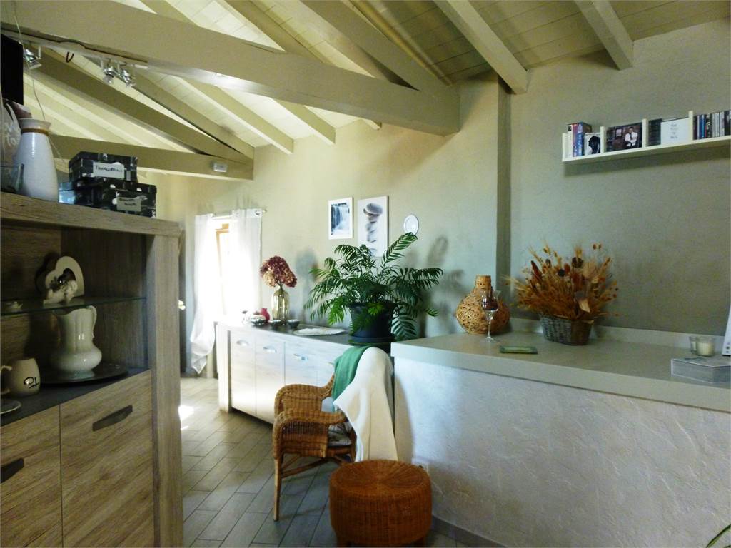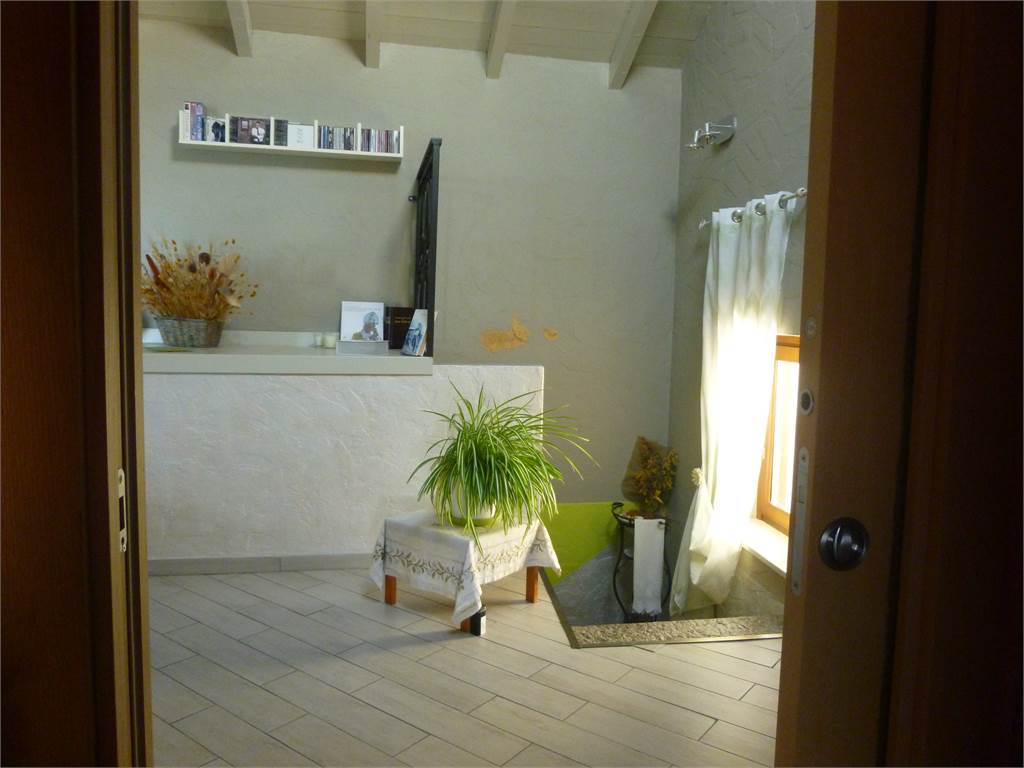 Il piano terra della casa con doppio ingresso indipendente è composto da sala pranzo/soggiorno con termo-camino, cucina a vista, bagno finestrato con doccia, ripostiglio, camera.