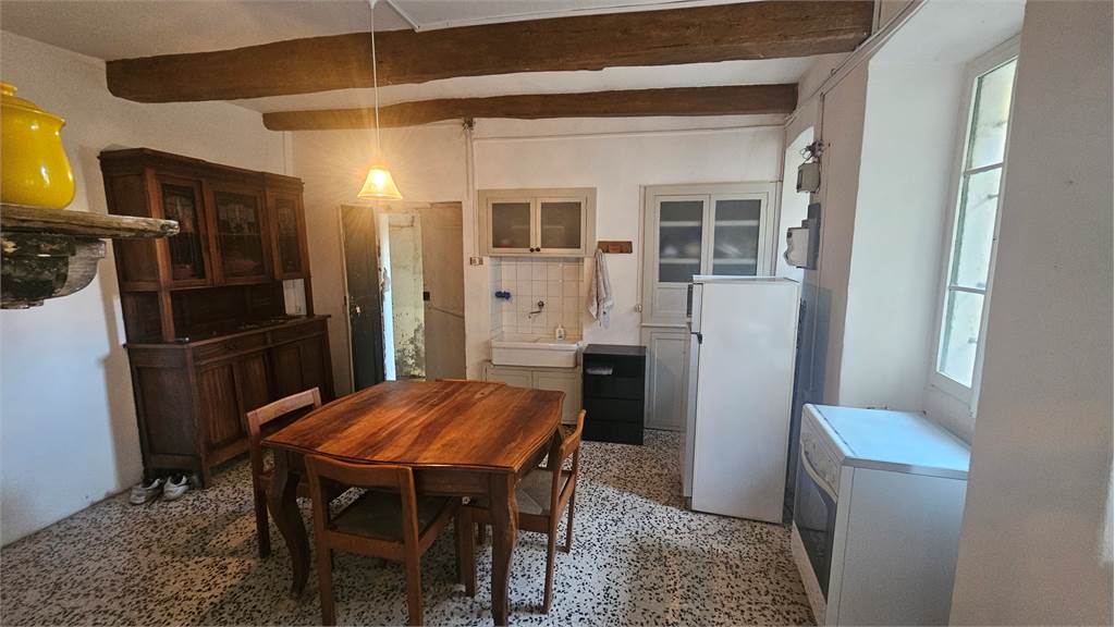 L'unità immobiliare al piano terra, dotata di antico camino in pietra e di stufa a legna è composto da tre locali ed un bagno, oltre alla cantina.